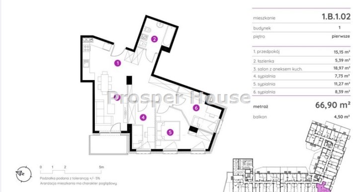 4 rooms 1 floor floor 66,90 m2 13 419,72 zł/m2