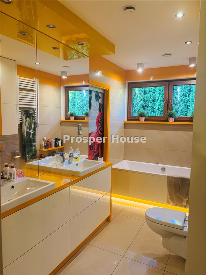 -Ogrzewanie : kominkowe, rekuperacyjne, na górze zamontowano grzejniki, na dole ogrzewanie podłogowe zasilane z kotła gazowego, elektrycznego bądź z solarów.