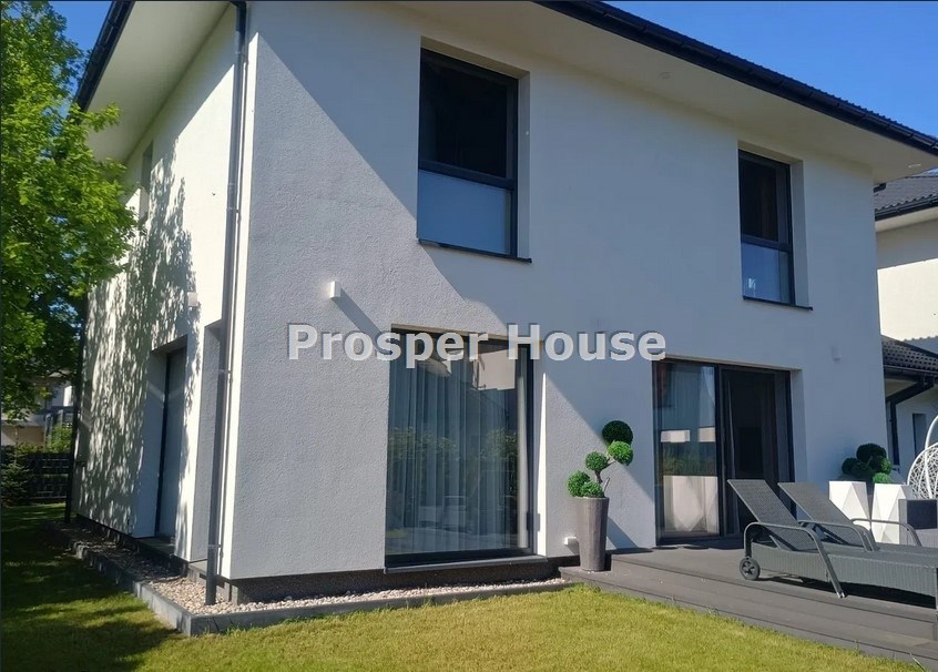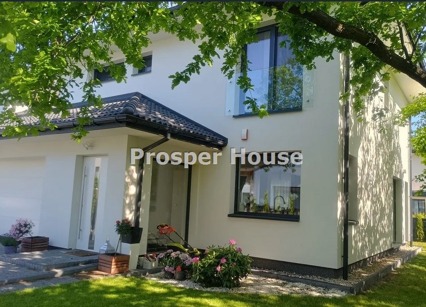 Nowoczesny dom w zabudowie bliźniaczej z 2022 roku, o powierzchni około 180 m kw. Położony w otulinie Kampinoskiego Parku Narodowego – w odległości zaledwie 3 km od Bemowa.