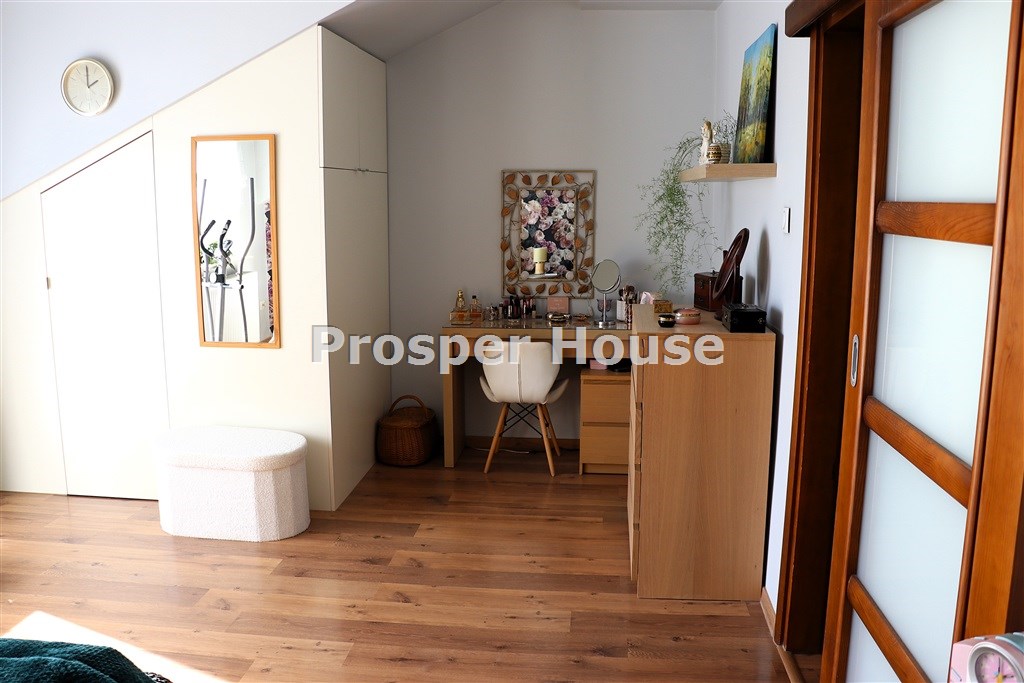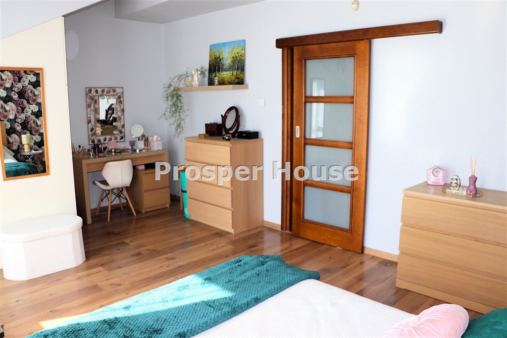 dwa pokoje po ok 25 m2 z możliwością dobudowania antresoli (sypialnia główna z dużą szafa/ garderobą), dwie łazienki +duża ustawna garderoba z oddzielnym wejściem.