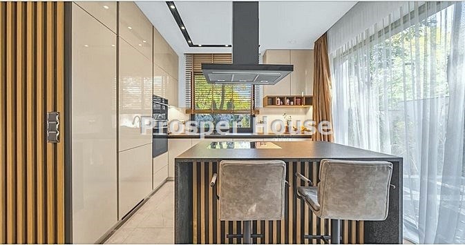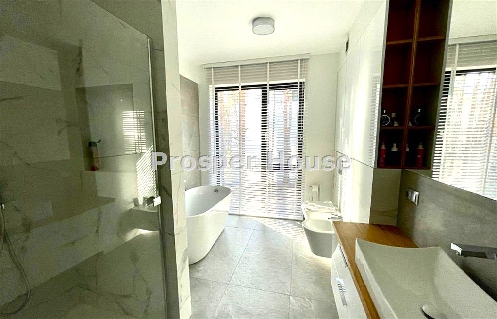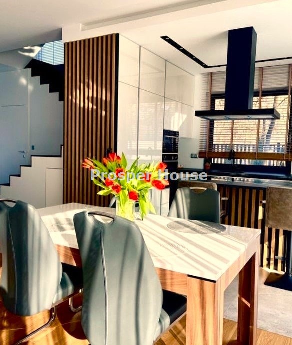Dom ma zamontowaną klimatyzacje, ogrzewanie podłogowe, kominek gazowy w spiekach, instalacja do ładowania aut elektrycznych, schody granitowe, podłogi drewniane.