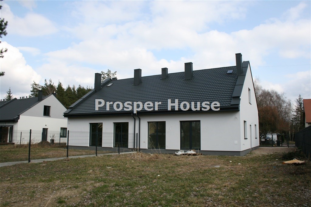 Nowy dom (pół bliźniaka) w stanie deweloperskim w bardzo malowniczej okolicy, wśród lasów i domów jednorodzinnych.