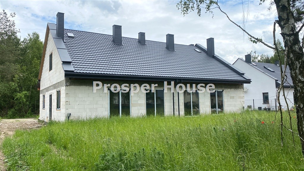 Nowy dom (pół bliźniaka) w stanie deweloperskim w bardzo malowniczej okolicy, wśród lasów i domów jednorodzinnych.