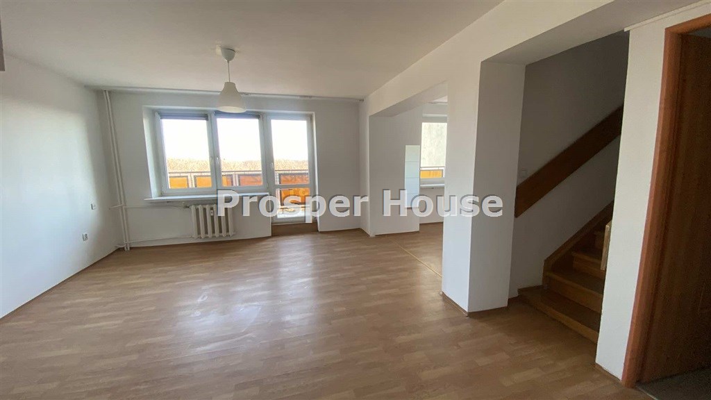 Duże dwupoziomowe mieszkanie. Pierwotnie pięć pokoi, obecnie przerobione na sześciopokojowe. Z ogromnym potencjałem.
