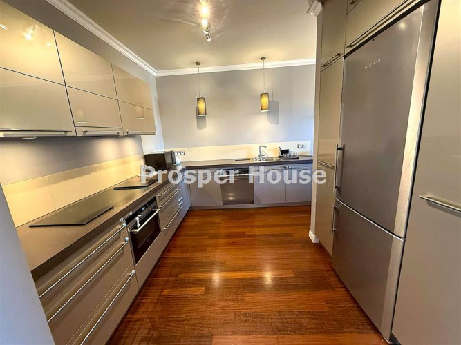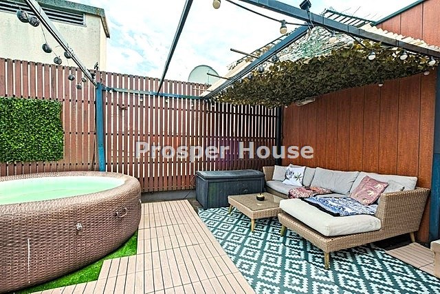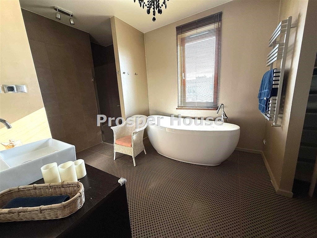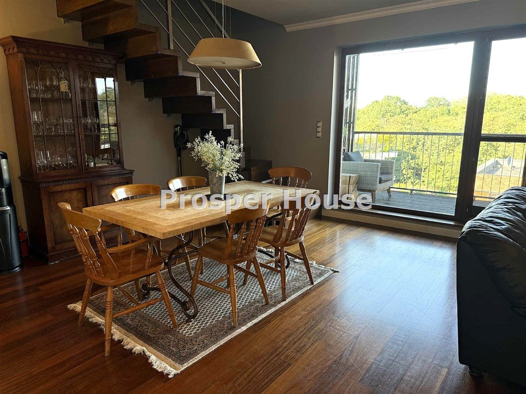 Apartament dwupoziomowy z 3 balkonami, tarasem. Dwustronny, bardzo dobrze doświetlony. Klimatyzowane.