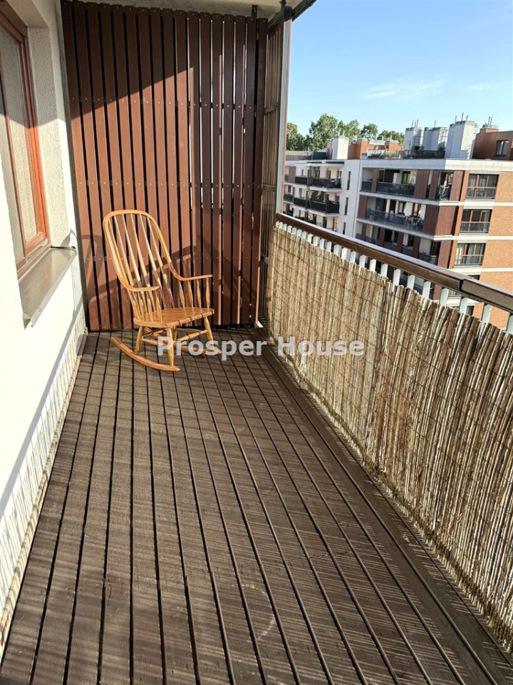 Apartament położony jest na najwyższych kondygnacjach budynku. Z okien rozpościera się przepiękny widok na zabytkowy Park Fort Bema ponad dachami sąsiednich budynków oraz na panoramę Warszawy.