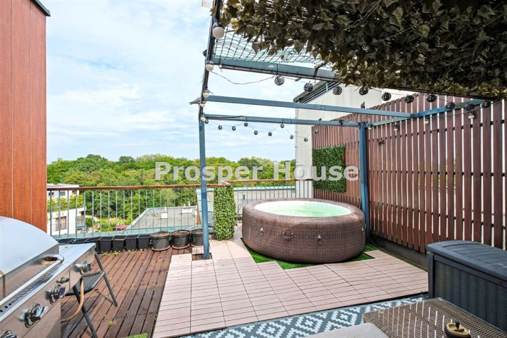 Apartament dwupoziomowy z 3 balkonami, tarasem. Dwustronny, bardzo dobrze doświetlony. Klimatyzowane.
