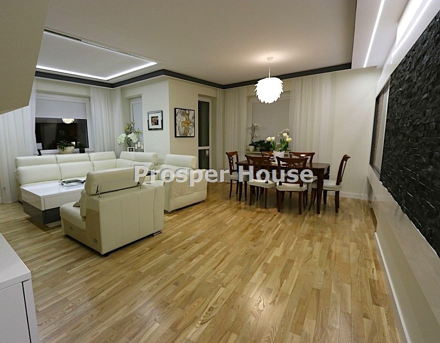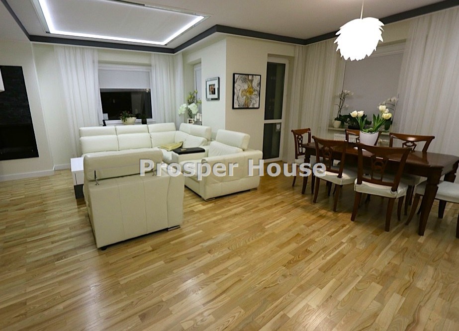 Mieszkanie wykończone i wyposażone w wysokim standardzie. W kuchni meble firmy Berloni wykonane na zamówienie, wyposażenie firmy FRANKE, ARISTON. W łazienkach wyposażenie firmy GROHE, Damixa, ceramika sanitarna firmy Bellavista. Na podłogach parkiet i gres.