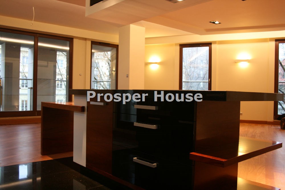 Ekskluzywny apartament dla najbardziej wymagających. Idealna lokalizacja przy Krakowskim Przedmieściu (widok z salonu). Duże okna portfenetry na trzy strony świata. Rozkład: hall, przestrzenny salon, kuchnia, sypialnia z łazienką i garderobą, sypialnia z łazienką, gabinet, toaleta, pom. techn./pralnia, loggia o pow 12 m2.Istnieje możliwość zmiany aranżacji apartamentu.