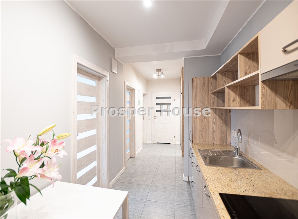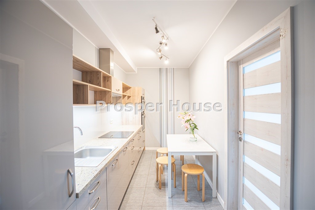 Mieszkanie składa się z 3 osobnych pokoi, kuchni z jadalnią, łazienki i holu. Jeden pokój ma wyjście na balkon. W pokojach położona piękna dębowa deska, w przedpokoju, kuchni i łazience - gres. Każda sypialnia wyposażona jest w wygodne łóżko, szafki nocne, szafę oraz biurko z krzesłem. Kuchnia wyposażona jest w płytę indukcyjną, okap, piekarnik elektryczny, zmywarkę, lodówkę, czajnik elektryczny oraz mikrofalówkę. W kuchni na wyposażeniu jest również stół i cztery wygodne stołki. W łazience jest kabina prysznicowa, pralka i duża szafa łazienkowa. W przedpokoju duża szafa na okrycia wierzchnie. Na balkonie - stolik i 2 krzesła. Okna nieruchomości wychodzą na wewnętrzne ciche i bardzo zielone patio. Inwestycja mieszkalna oddana do użytkowania w 2016 r. Mieszkanie jest wykończone w wysokim standardzie, w pełni umeblowane oraz wyposażone w potrzebne sprzęty AGD.
